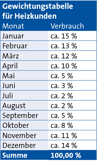 Die Gradtagszahl dient der Abschätzung des Heizenergiebedarfs eines Gebäudes und somit Ihres Energieverbrauches. Die im PDF abgebildete Tabelle zeigt die prozentuale Verteilung der Heizenergie, die pro Monat bei durchschnittlicher Nutzung verbraucht wird, wenn man von einem sogenannten „Normaljahr“ für unseren Standort ausgeht. Sie dient dazu, eine ungefähre Vorstellung über die Verteilung der Energieverbräuche über die Monate zu erhalten. Ein „Normaljahr“ ist ein Jahr, in dem in jedem Monat durchschnittliche Temperaturen herrschen. In der Realität variieren die Temperaturen von Jahr zu Jahr stark. Deshalb sind die abgebildeten Werte unverbindlich und dienen lediglich der Orientierung.