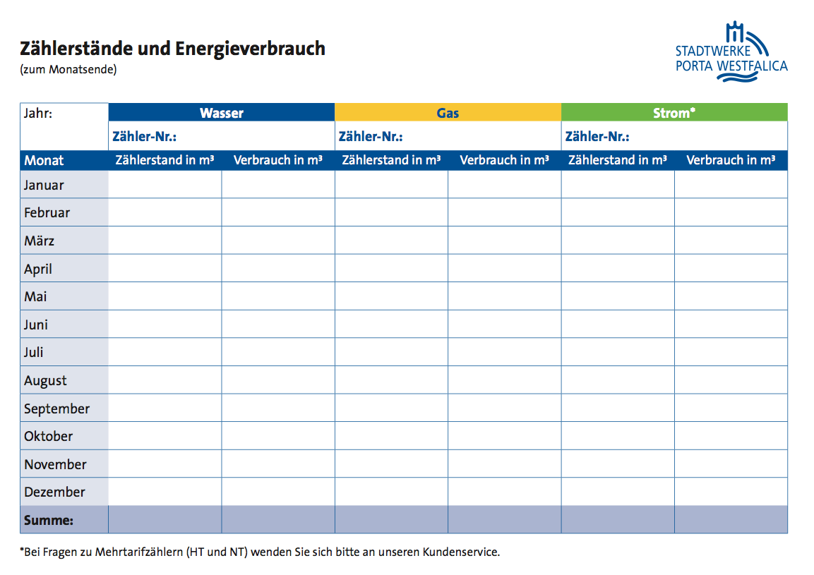 Nutzen Sie hierfür einfach unsere "Tabelle zur Erfassung des eigenen Energieverbrauches" und tragen Sie die Zählerstände monatlich ein. Einfach auf den Link klicken und herunterladen. Im Kundenservice händigt Jürgen Volkmann Ihnen auch gerne persönlich eine ausgedruckte Tabelle aus.